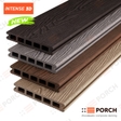 Серия Intense оснащена четырьмя ребрами жесткости (пять камер), что делает эту доску значительно прочнее других аналогичных продуктов. Эта особенность позволяет использовать доску как для частного сектора, так и для коммерческих проектов (уменьшив при этом расстояние между лагами). Еще одной особенностью этого продукта является глубокое 3D тиснение под дерево. Это визуально максимально приближает данный продукт к натуральной древесине и расширяет дизайнерские возможности. Террасная доска Porch Intense имеет двустороннюю структуру, одна сторона имитирует текстуру дерева, а другая рифленая.